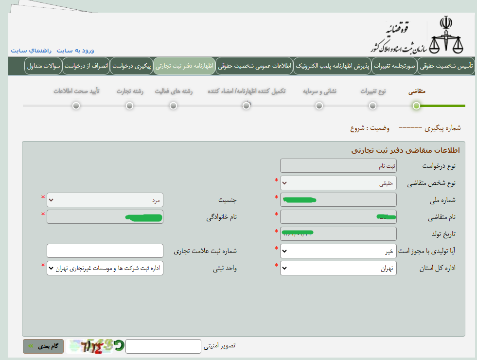 فرد متقاضی یا نماینده وی اطلاعات اظهاری را تکمیل کرده و وارد گام بعدی می شود.